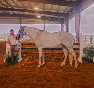 Dolce is one of the sweetest mares to come into the barn. She has ended up on the back burner after her post-track days due to always being a trainer’s horse. She is ready and deserves her own person! She was owned by a college student who has run out of time for her during her senior year. She is now showing a love for eventing and has taken to it naturally!