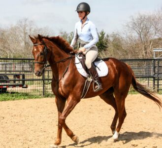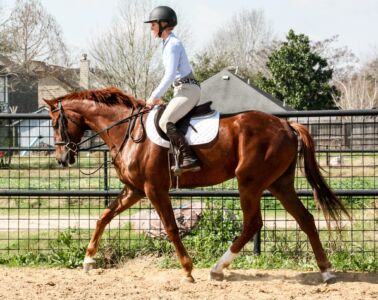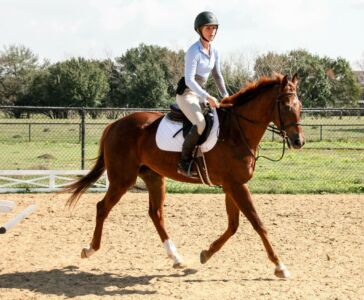Travis had a less than fabulous track career and just did not have the heart for it. He retired sane and sound and has quickly become a barn favorite with his sweet, quiet demeanor since August 2016. He had the entire month of August and most of September to come down from racing and was slowly started back under saddle. He looks like an old english thoroughbred, with long legs, a lean body and smaller ears. He is exceptionally quiet w/t/c working on relaxation, balance, and straightness and is jumping small courses of 2’3″. This handsome boy has legs for days and the quietest footfalls you will never hear. His long sweeping canter will take you down the lines. He will excel in any discipline. He loves being the center of attention, always in a calm manner. Travis will make someone a beautiful prospect with low miles to finish your way. His topline is filling out nicely and he is in training on our HorseGym USA treadmill 3 days per week. Already ridden by short stirrup riders and Jr. Amateurs, Travis is ready for a new home.